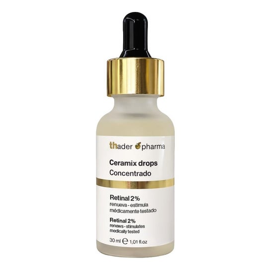Th Pharma Retinal 2% Ceramix Drops 30ml est un concentré anti-âge avancé formulé pour favoriser la renouvellement de la peau et améliorer les signes du vieillissement. Il incorpore rétinal à 2%, qui stimule la synthèse de collagène et accélère le renouvellement cellulaire, aidant à obtenir une peau plus ferme, élastique et uniforme.