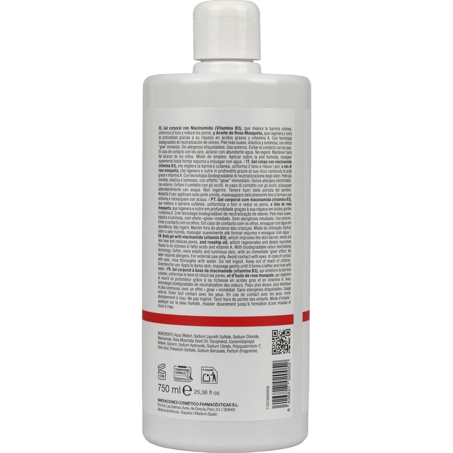 Th Pharma Zero Gel Rose Musquée 750 ml pour régénérer et illuminer la peau est un gel douche pour le soin corporel quotidien. Il nettoie en douceur et nourrit en profondeur. Il est enrichi en niacinamide et en huile de rose musquée, conçu pour les peaux qui recherchent vitalité et luminosité.