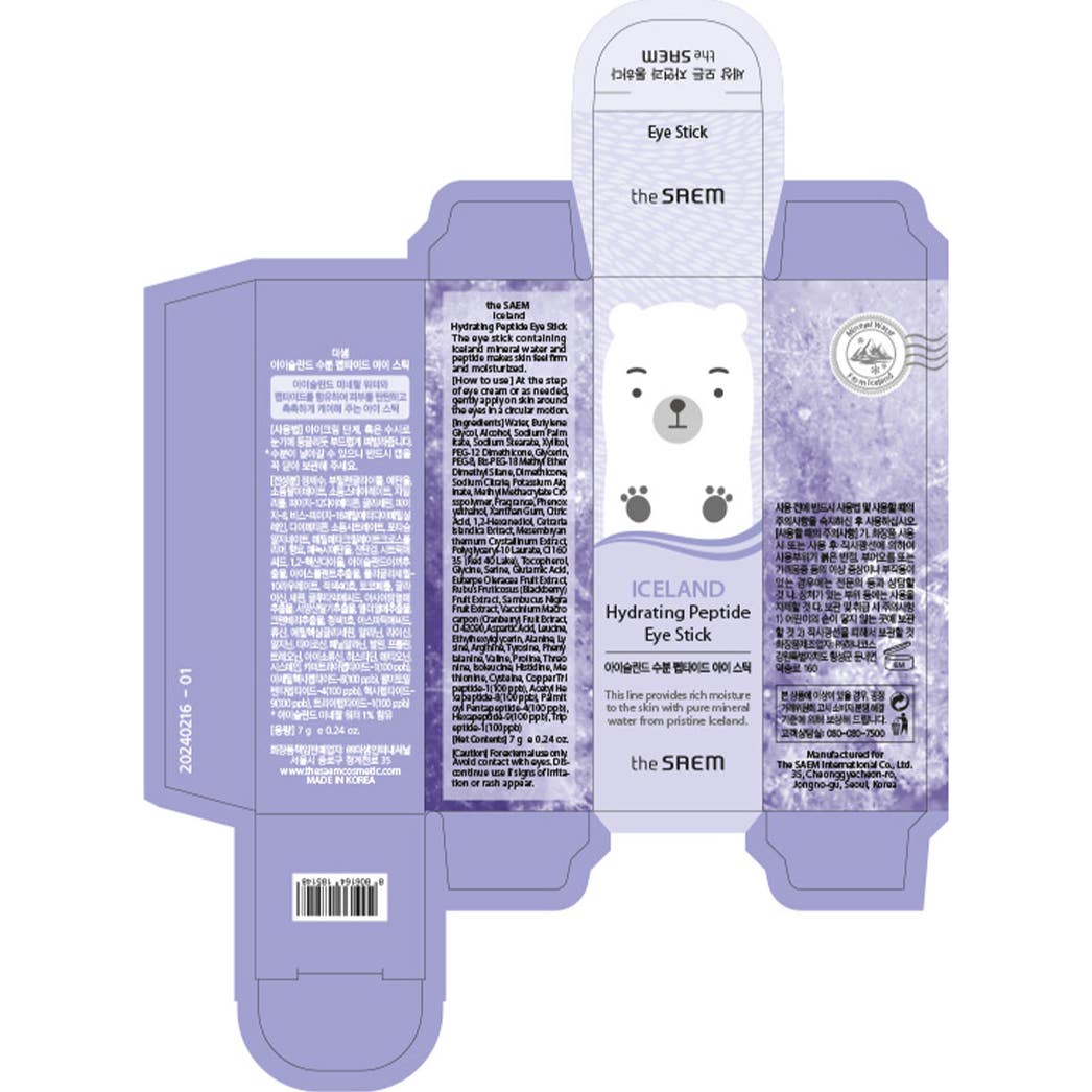 The Saem Iceland Hydrating Peptide Eye Stick 7g est un traitement pour le contour des yeux qui revitalise et fournit une hydratation. Ce produit, présenté dans un format stick pratique, est conçu pour nourrir et adoucir la délicate peau autour des yeux de manière rapide et efficace.