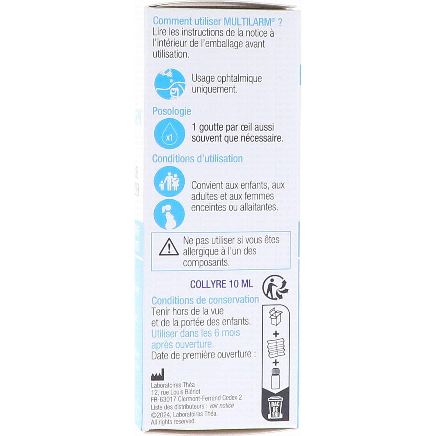 Théa Multilarm Soin Oculaire Quotidien 10 ml est un traitement oculaire conçu pour répondre aux besoins de tes yeux secs ou fatigués. Ce produit est formulé avec de l'acide hyaluronique, qui aide à maintenir l'hydratation oculaire. De plus, il contient des extraits de plantes qui contribuent à apporter confort et soulagement à tes yeux.