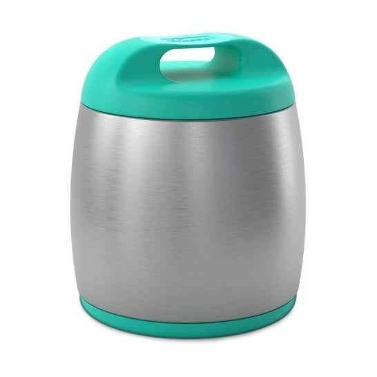 Thermos en acier inoxydable, idéal pour faciliter le transport des aliments pour bébés à partir de 6 mois. Son matériau permet de maintenir la température des aliments chauds ou froids pendant environ 6 heures.