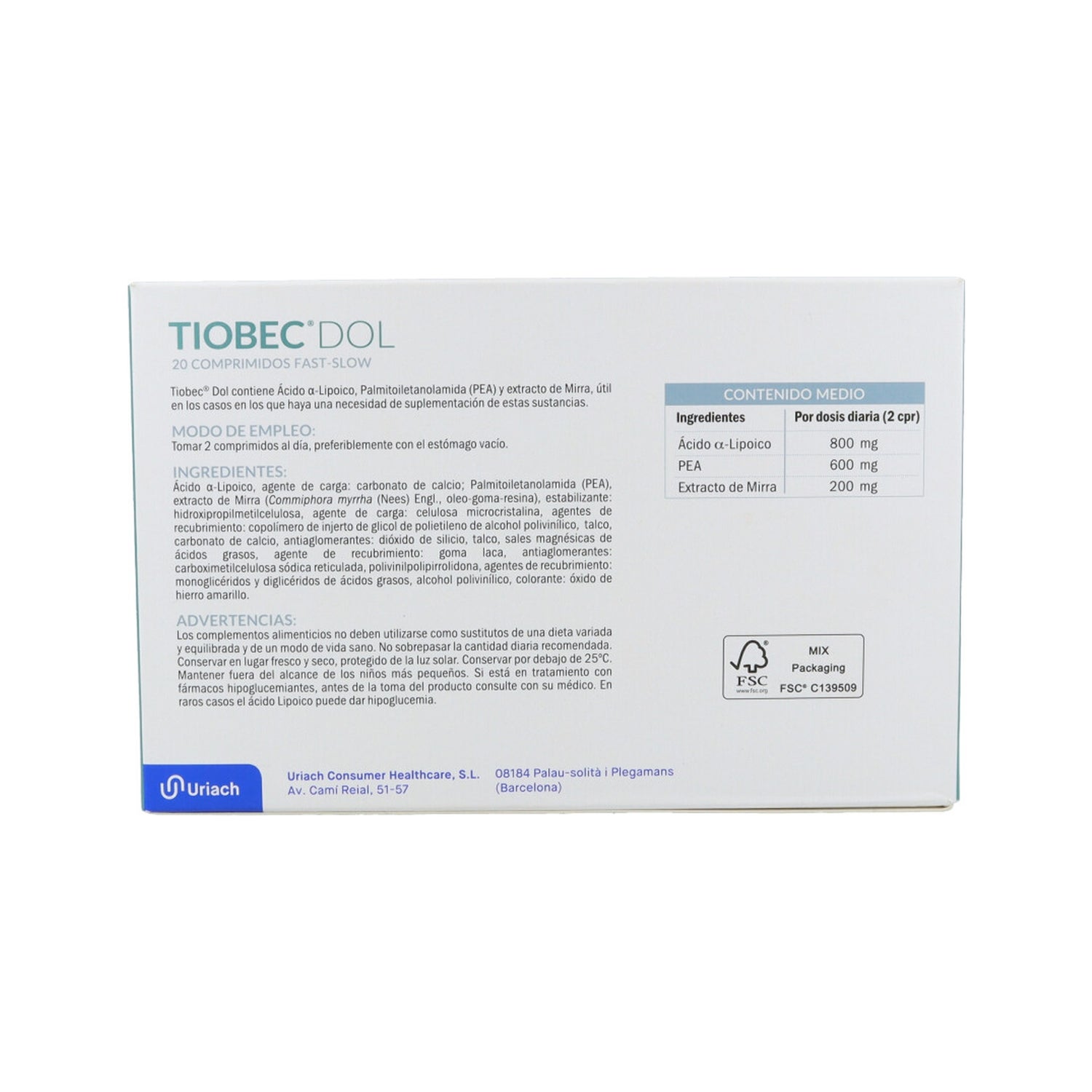 Tiobec Dol 20 Comprimés est un complément alimentaire qui contribue à protéger le système nerveux grâce à sa teneur en acide lipoïque.