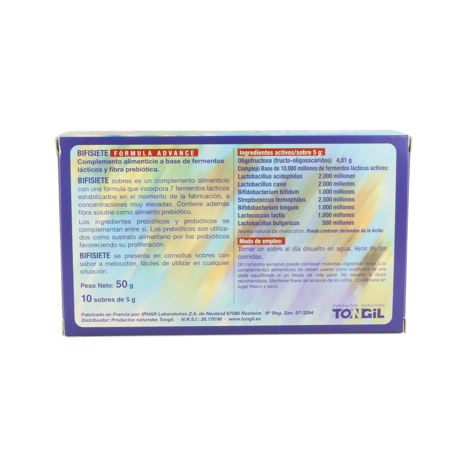 Tongil Bifisiete 10abs est un complément alimentaire formulé avec des probiotiques et des fibres prébiotiques. Il contient 7 souches de probiotiques et 10 000 millions de micro-organismes par sachet.