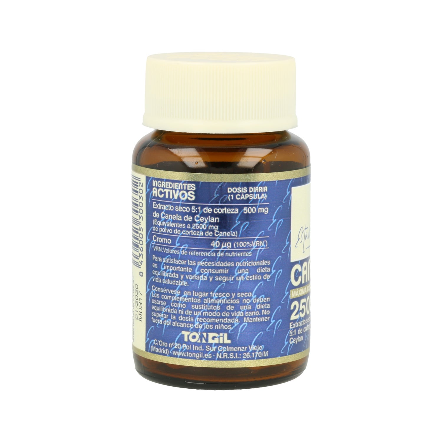 Par 1 capsule : Extrait sec 5:1 d'écorce de cannelle de Ceylan (équivalent à (2500 mg) de poudre d'écorce de cannelle) (500 mg), Chrome (40 microgrammes).