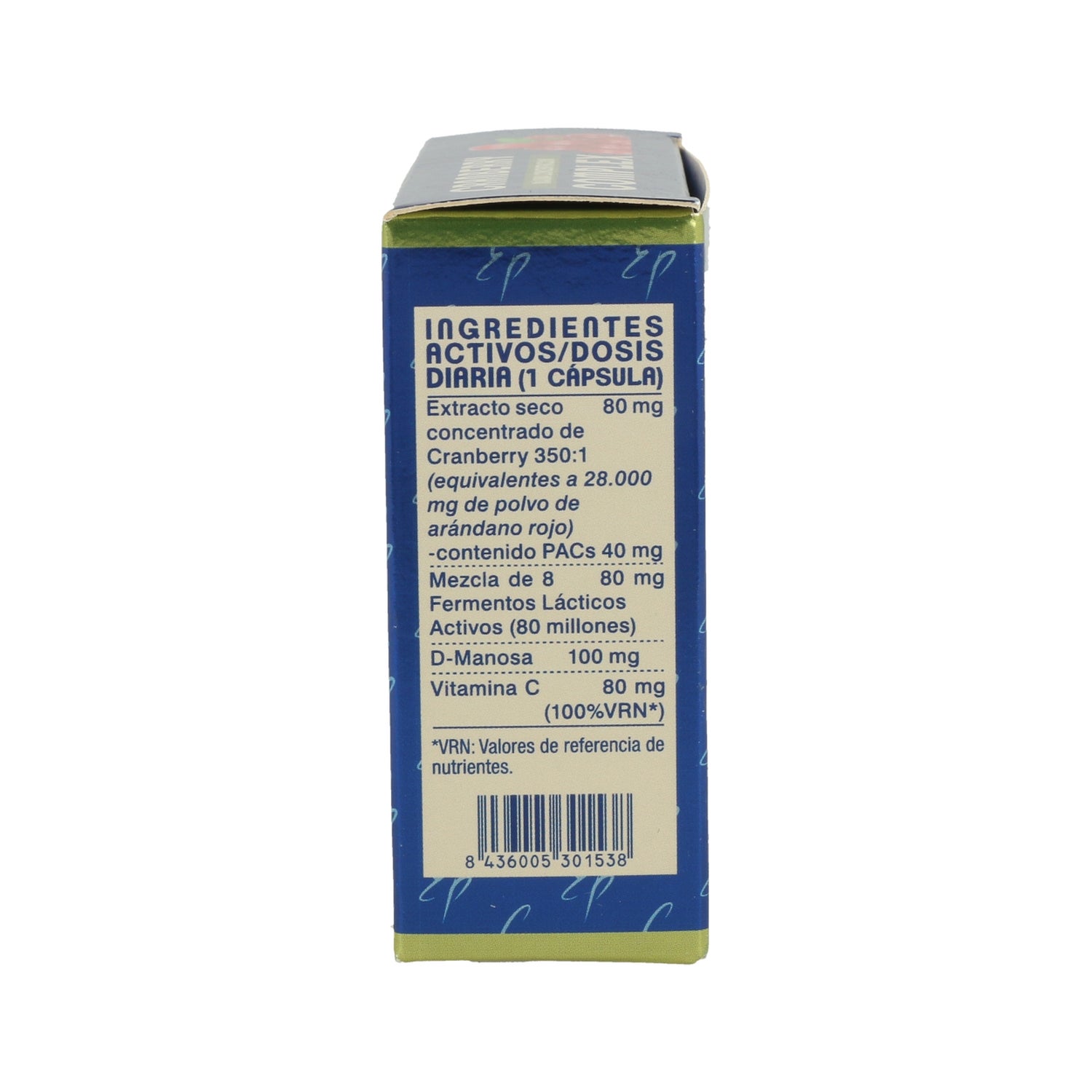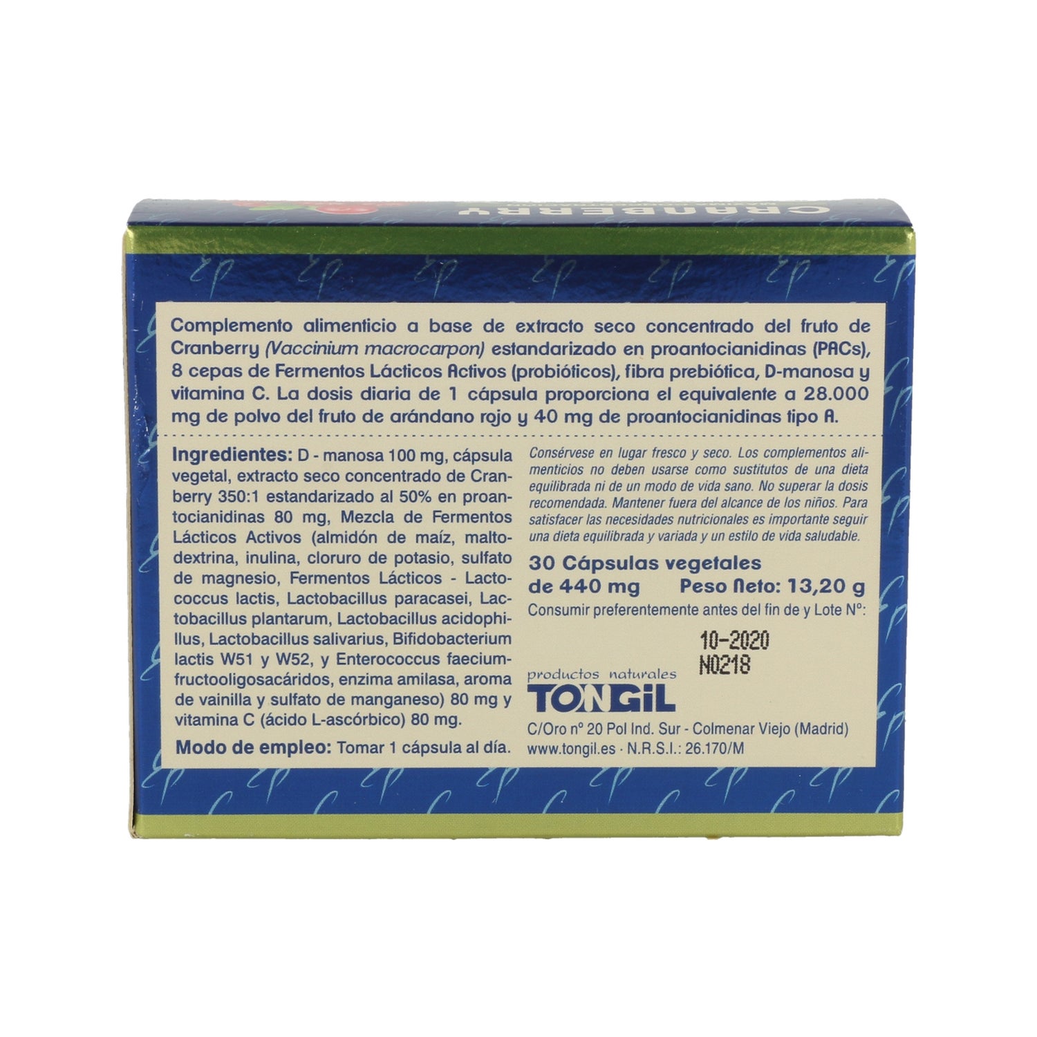 Complément alimentaire sous forme de gélules spécialement conçu pour aider à maintenir la santé des voies urinaires, en soulageant les symptômes de la cystite, grâce à son composé élaboré à partir de canneberge américaine et à ses substances anti-adhésives appelées proanthocyanidines, qui empêchent les bactéries responsables de la cystite d'adhérer aux voies urinaires, en particulier la bactérie Eschericia coli.