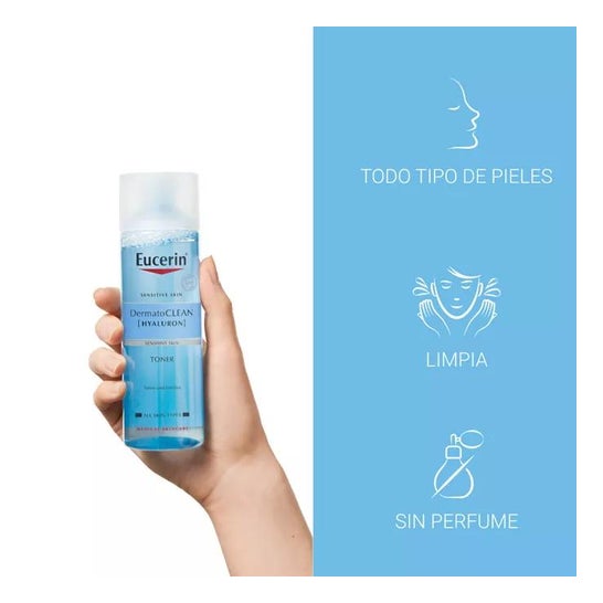 Eucerin Dermatoclean Hyaluron Toner 200ml est un tonique pour nettoyer tous les types de peau, y compris les peaux sèches et sensibles . Il aide à débarrasser le visage des impuretés qui s'accumulent dans les couches superficielles du visage au fil des heures.