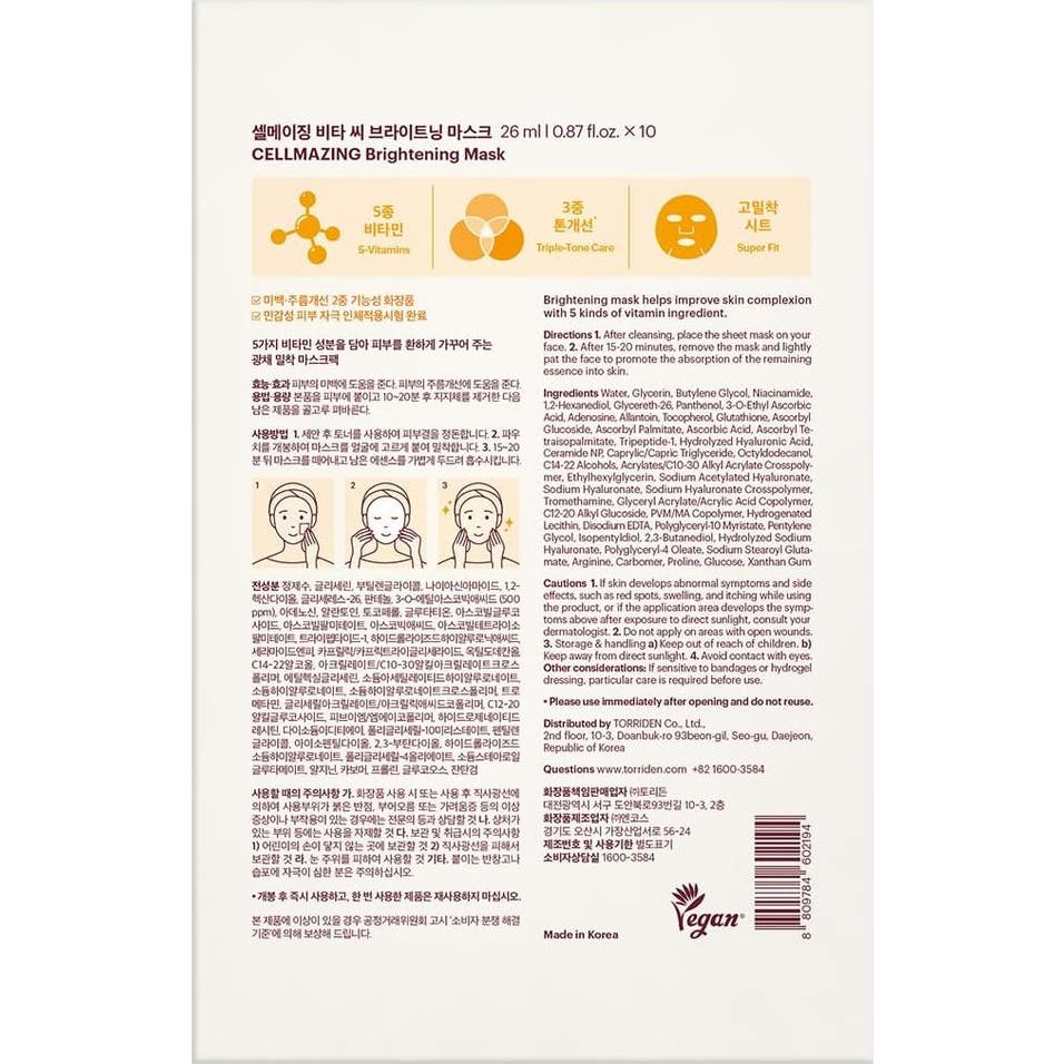 Torriden Cellmazing Masque Tissu Éclaircissant Vitamine C 26 ml est un traitement spécifique conçu pour :