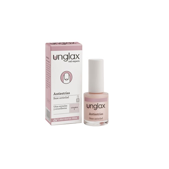 Unglax anti-vergetures est un vernis à ongles lissant pour combattre les ongles striés et jaunâtres ;