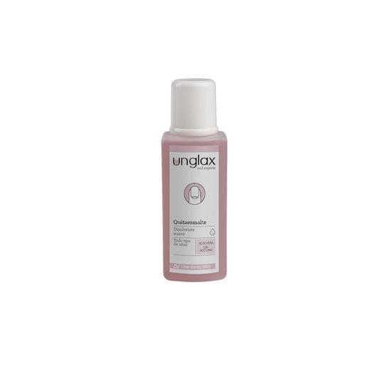 Unglax dissolvant 115ml est un dissolvant qui élimine efficacement le vernis de manière douce et sans agresser la surface des ongles, grâce à sa formule qui inclut de l'extrait d'aloe vera qui hydrate en profondeur et ne contient pas d'acétone.