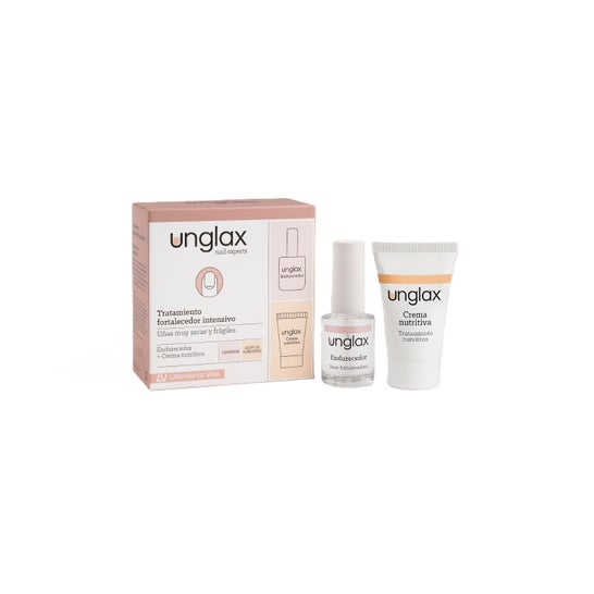 Unglax Soin Fortifiant Intensif Ongles est un traitement en deux étapes spécialement indiqué pour les ongles très secs et fragiles. Il comprend les produits suivants :