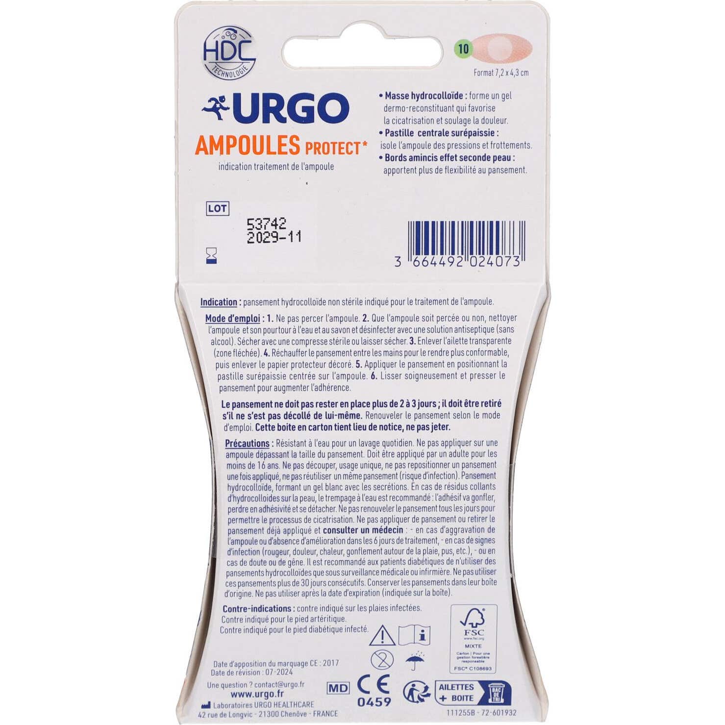 Urgo Ampoules Protect Pastille Épaissie Talon est un pansement hydrocolloïde conçu pour agir comme une seconde peau, offrant un soulagement et favorisant la cicatrisation des ampoules au talon. Ce produit est disponible en formats de 5 ou 10 unités, et est adapté pour enfants, adolescents et adultes.