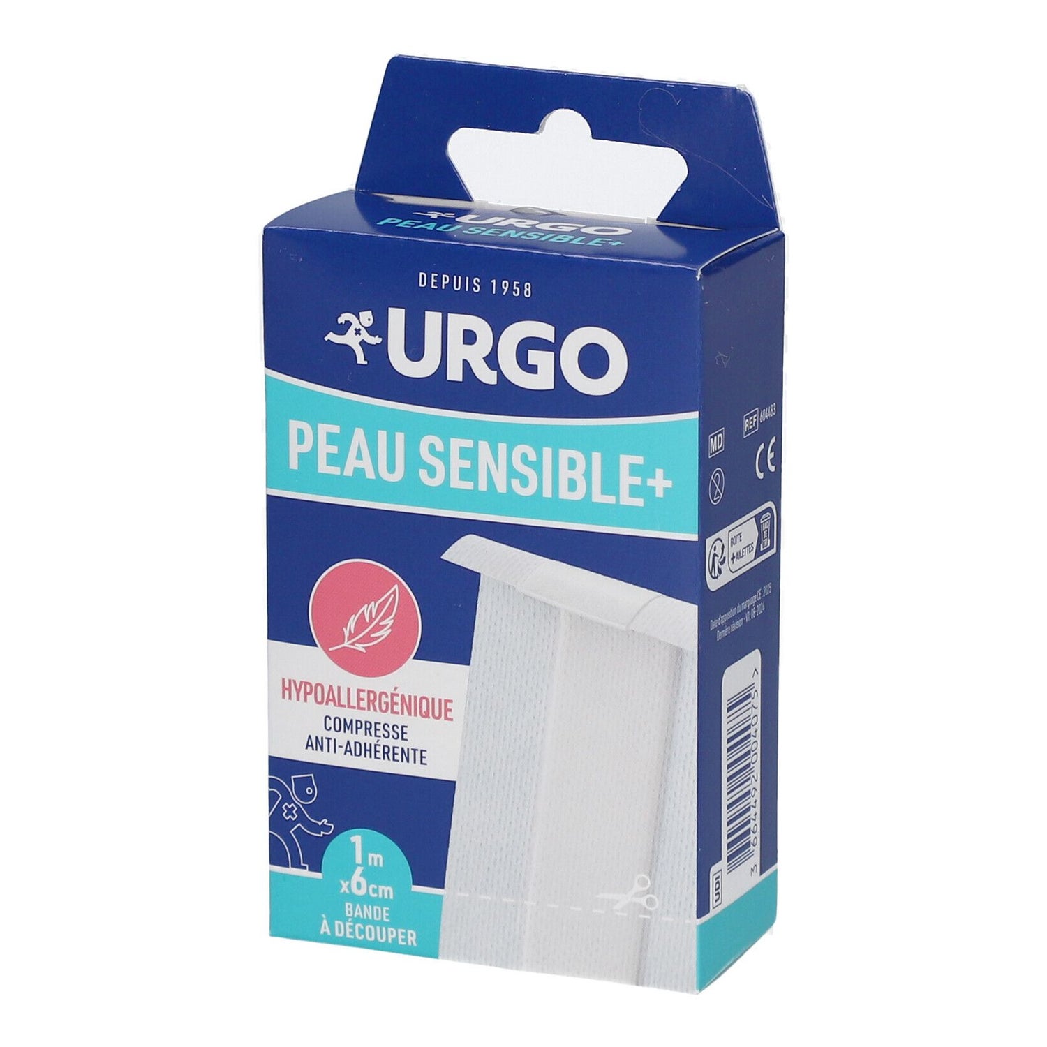 Urgo Peau Sensible+ Compresse Non-adhérente 1 m x 6 cm est un pansement spécialement conçu pour offrir une protection douce aux peaux sensibles, adapté aux personnes à partir de 3 ans.