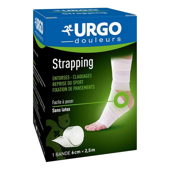Urgo Strapping Bande Adhesive Élastique Sans Latex 2,5Mx6cm est un produit conçu pour fournir soutien et protection dans diverses zones du corps. Ce bandage élastique, fabriqué en un tissu blanc 100% coton, est idéal pour une utilisation dans des situations nécessitant une compression contrôlée.
