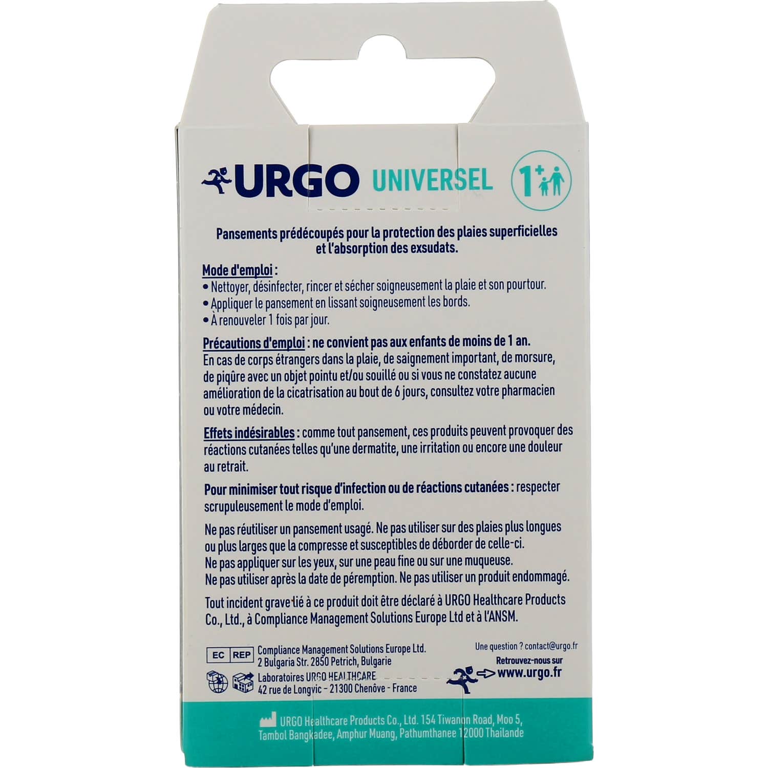 Ce paquet d'Urgo Universal comprend divers formats pour s'adapter à différents types de blessures. À l'intérieur, on trouve :