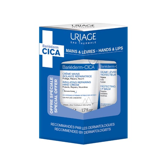 Uriage Bariederm-Cica Crème Mains 50 ml + Balm à Lèvres 15 ml est un ensemble conçu pour la protection et la réparation intensives de tes mains et lèvres. Ce duo essentiel est formulé pour prendre soin des zones les plus exposées et sensibles, étant idéal dans des conditions climatiques défavorables, après des lavages fréquents ou l'utilisation de produits agressifs.