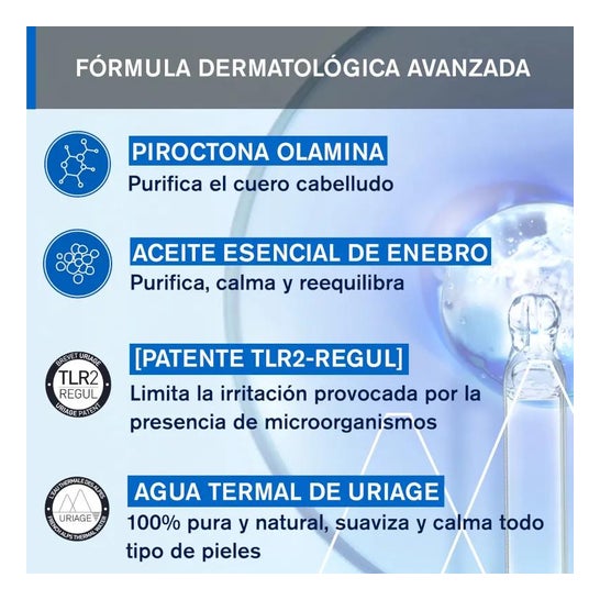 Sa formulation, avec de l’huile essentielle de Cade et la technologie brevetée TLR2-Regul, aide à réduire l’irritation du cuir chevelu. En outre, grâce à la teneur en eau thermale d’Uriage, elle contribue à purifier et désinfecter la peau du cuir chevelu. Utilisé quotidiennement, elle permet de retrouver rapidement et durablement un cuir chevelu sain. Cette lotion ne graisse pas le cheveu et facilite le coiffage.