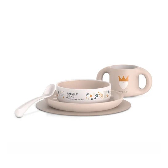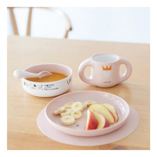 Vaisselle sans matériaux nocifs, spécialement conçue pour contribuer à l'enseignement de l'alimentation des bébés, contenant.. :