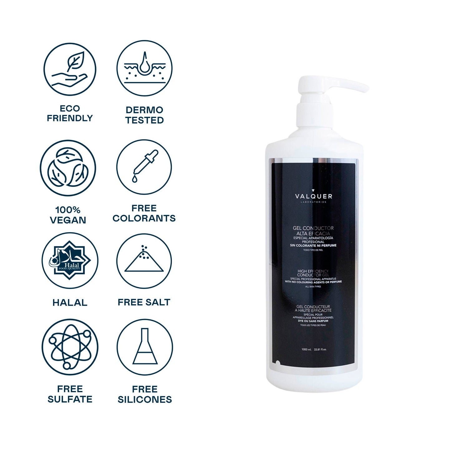 C'est un gel, spécialement indiqué pour l'application de traitements esthétiques dans les salons de beauté tant corporels que faciaux. Gel conducteur Facial & Corporel.
