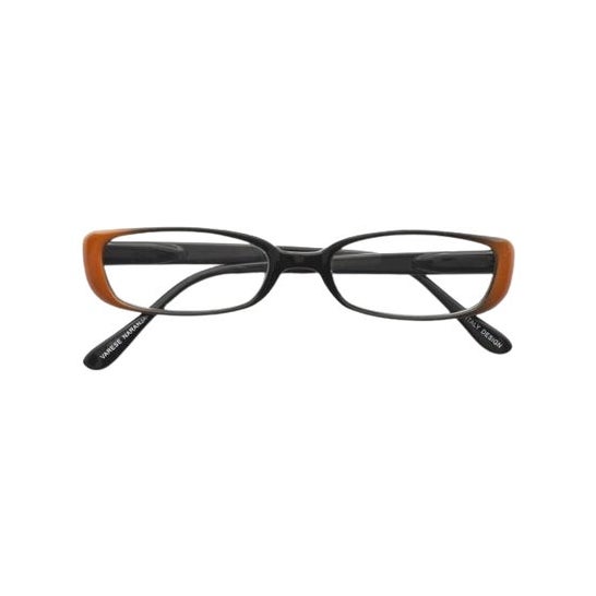 Les lunettes de lecture Vari+San Varese Orange Colour 1 dioptrie sont des lunettes auxiliaires qui permettent de faciliter la lecture 1 dioptrie. Ces lunettes conviennent aux personnes atteintes de presbytie ou de fatigue visuelle sans astigmatisme, elles ont un effet grossissant pour faciliter la vision. Afin d'éviter les symptômes de la fatigue oculaire, il est conseillé d'utiliser des lunettes qui permettent de corriger les dioptries.Les lunettes Vari+San Varese ont une monture en résine synthétique avec des tons orange et noirs.Dioptries : 1.