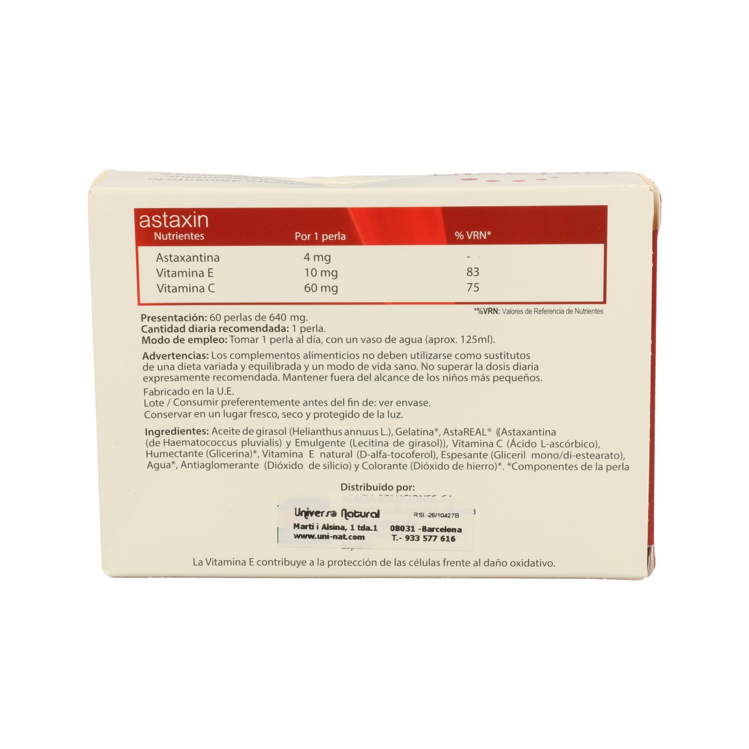 Dioxyde de silicium, huile de tournesol, lécithine de soja, vitamine C, vitamine E, glycérol, astaxanthine extraite de Haematococcus pluvialis, oxyde de fer E172.