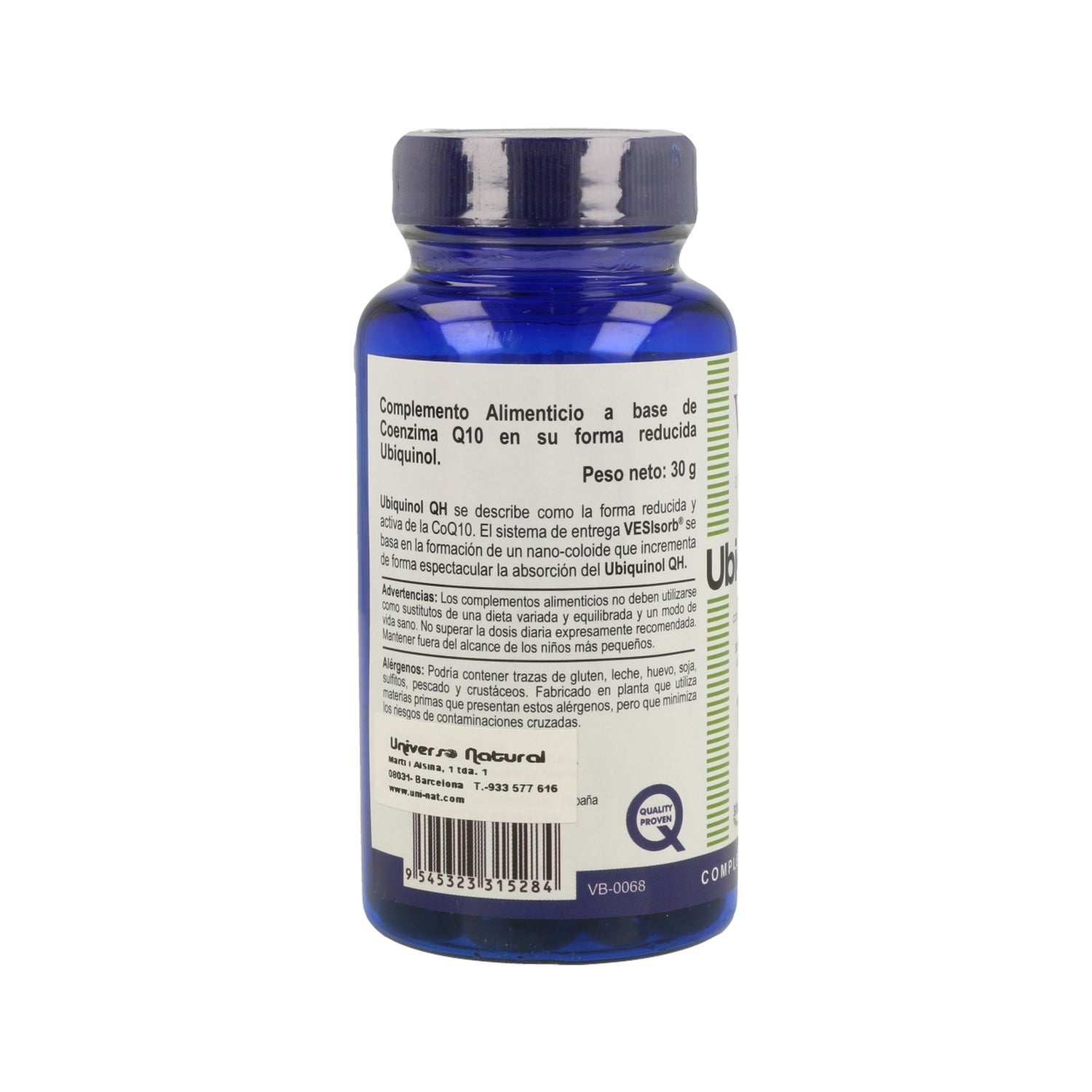 Complément alimentaire formulé avec de l'Ubiquinol QH. Produit naturel qui joue un rôle clé dans la chaîne de transport des électrons de la cellule car, en transférant des électrons, il neutralise l'action des radicaux libres, ce qui en fait un puissant antioxydant liposoluble.