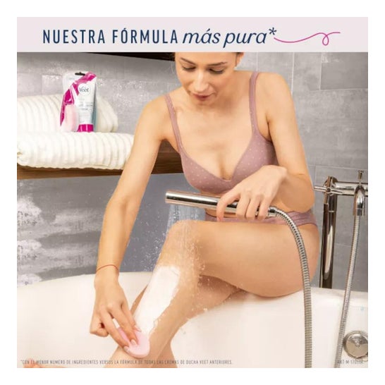 Crème dépilatoire pour la douche Veet, qui permet une épilation efficace dans l'eau. Facile à appliquer, grâce au fait qu'elle a été spécialement formulée pour favoriser l'épilation sous la douche. Elle contient les ingrédients parfaits pour résister correctement à l'eau, tout en agissant et en permettant une épilation complète du corps. Cette crème dépilatoire convient aux femmes et aux hommes qui ont besoin d'une méthode d'épilation respectueuse de leur peau et de l'environnement.