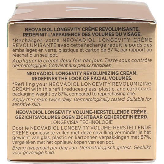De plus, Vichy Neovadiol Longevity Crème Revitalisante se présente dans un emballage rechargeable, ce qui permet de réduire la quantité d'emballage de 87% en utilisant la recharge correspondante. Cette approche durable inclut un processus de recharge simple, qui encourage le recyclage et la réduction des déchets.