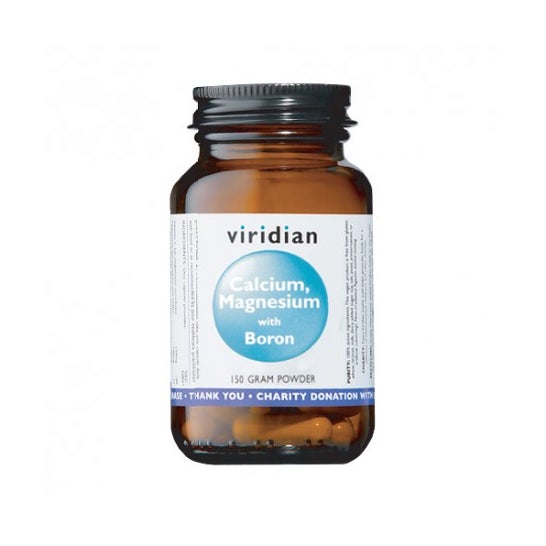 Viridian Calcium Magnesium Boron Vitamine C 150g complément alimentaire composé de calcium et de magnésium, deux minéraux importants qui aident au maintien de la santé des os. le magnésium, avec l'acide malique, joue un rôle important dans le bon fonctionnement des nerfs et des muscles, et est très impliqué dans la libération d'énergie. produit vegan et casher.
