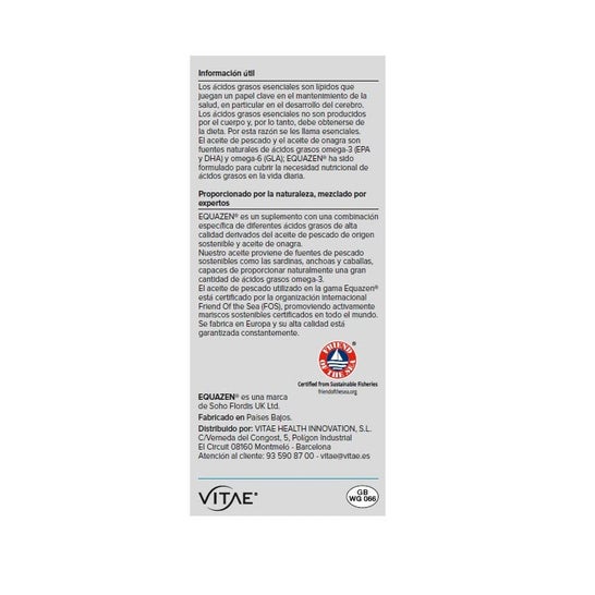 Complément alimentaire Equazen avec une formule à base d'huile de poisson riche en Oméga 3 (80% EPA et 20% DHA) et en Oméga 6 (huile vierge d'onagre).