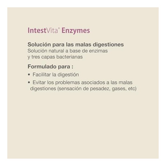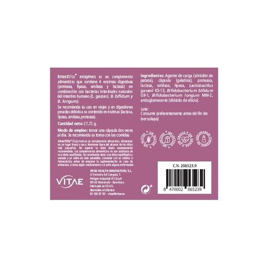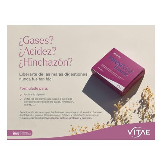 Vitae IntestVita Enzymes 60caps est un complément alimentaire formulé avec des enzymes digestives et 3 souches bactériennes.