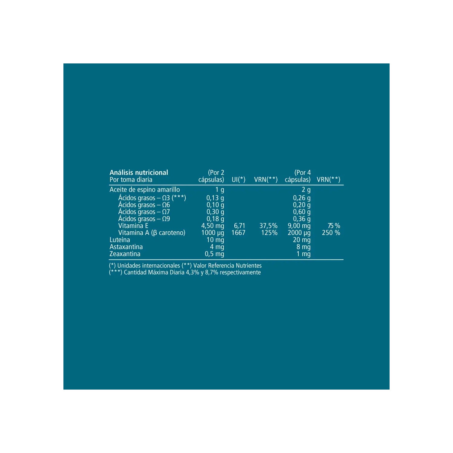 Hydratation, protection et nutrition oculaire grâce à l'huile de baies d'argousier, à la lutéine, à la zéaxanthine et à l'astaxanthine.