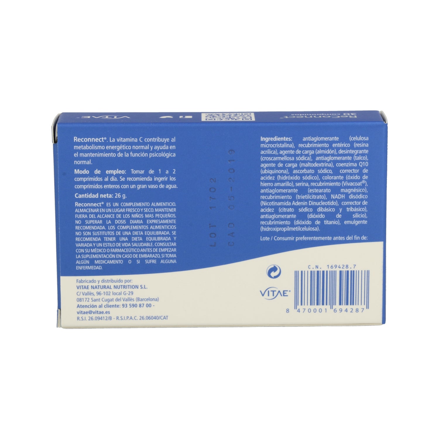 Vitae ReConnect® 30comps est un complément alimentaire qui aide à améliorer les performances physiques et cognitives et est particulièrement indiqué pour aider à prévenir les pertes de mémoire liées à l'âge. Son excellente formulation est basée sur la combinaison du NADH, de la coenzyme Q10, de la sérine et de la vitamine C.