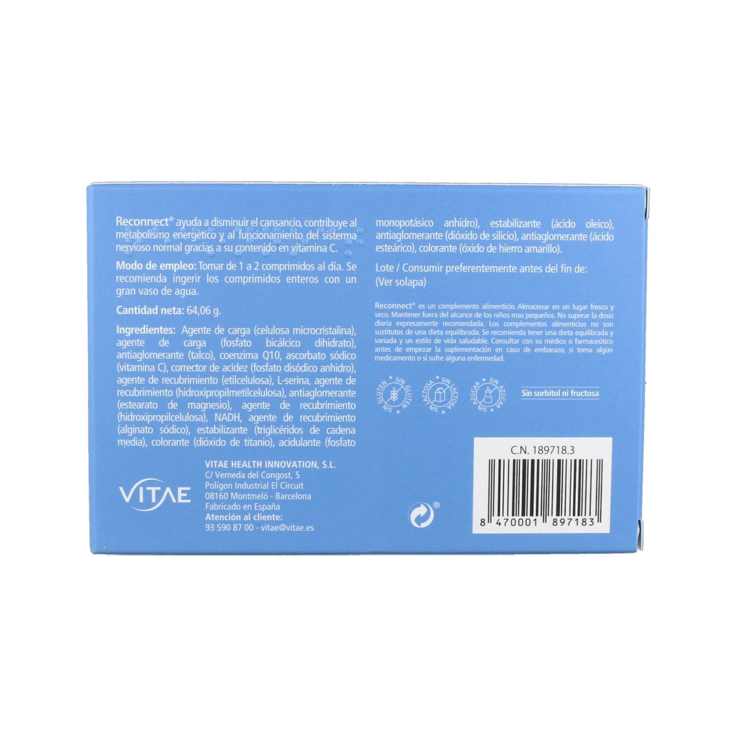 Vitae ReConnect® 90comps est un complément alimentaire qui aide à améliorer les performances physiques et cognitives et est particulièrement indiqué pour aider à prévenir les pertes de mémoire liées à l'âge. Son excellente formulation est basée sur la combinaison du NADH, de la coenzyme Q10, de la sérine et de la vitamine C.