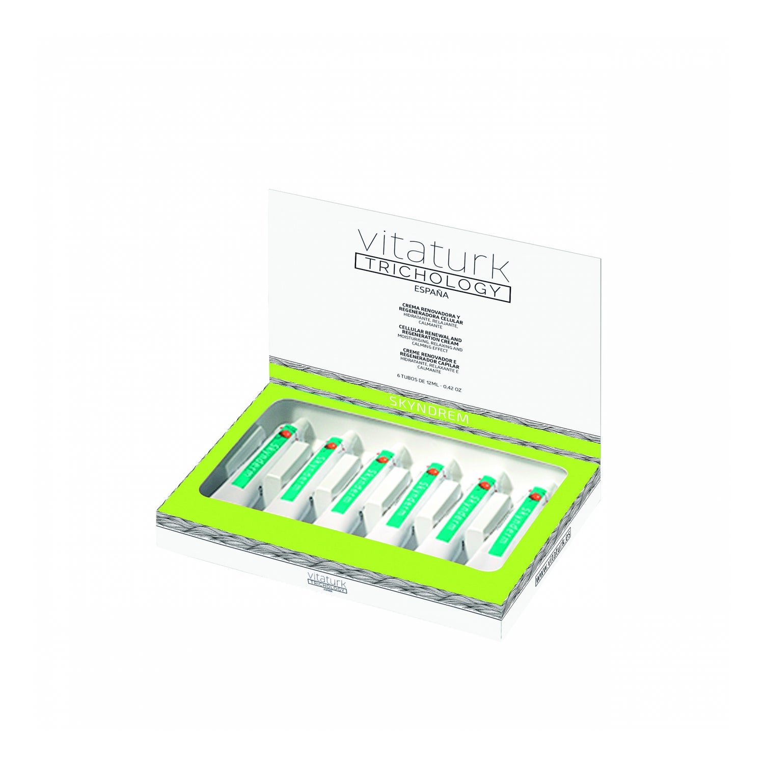 La Crème Régénérante Cellulaire Régénérante Skinderm est une crème capillaire épidermique qui régénère et revitalise la peau intoxiquée, déshydratée, punie, irritée ou enflammée. Il aide également à apaiser les rougeurs de la peau du cuir chevelu, du visage et du front. C'est un rénovateur cellulaire de la couche cornée, anti-cancéreuse et calmante, laissant la peau dans des conditions idéales à traiter, favorisant l'absorption des lotions, crèmes et autres produits nourrissants.