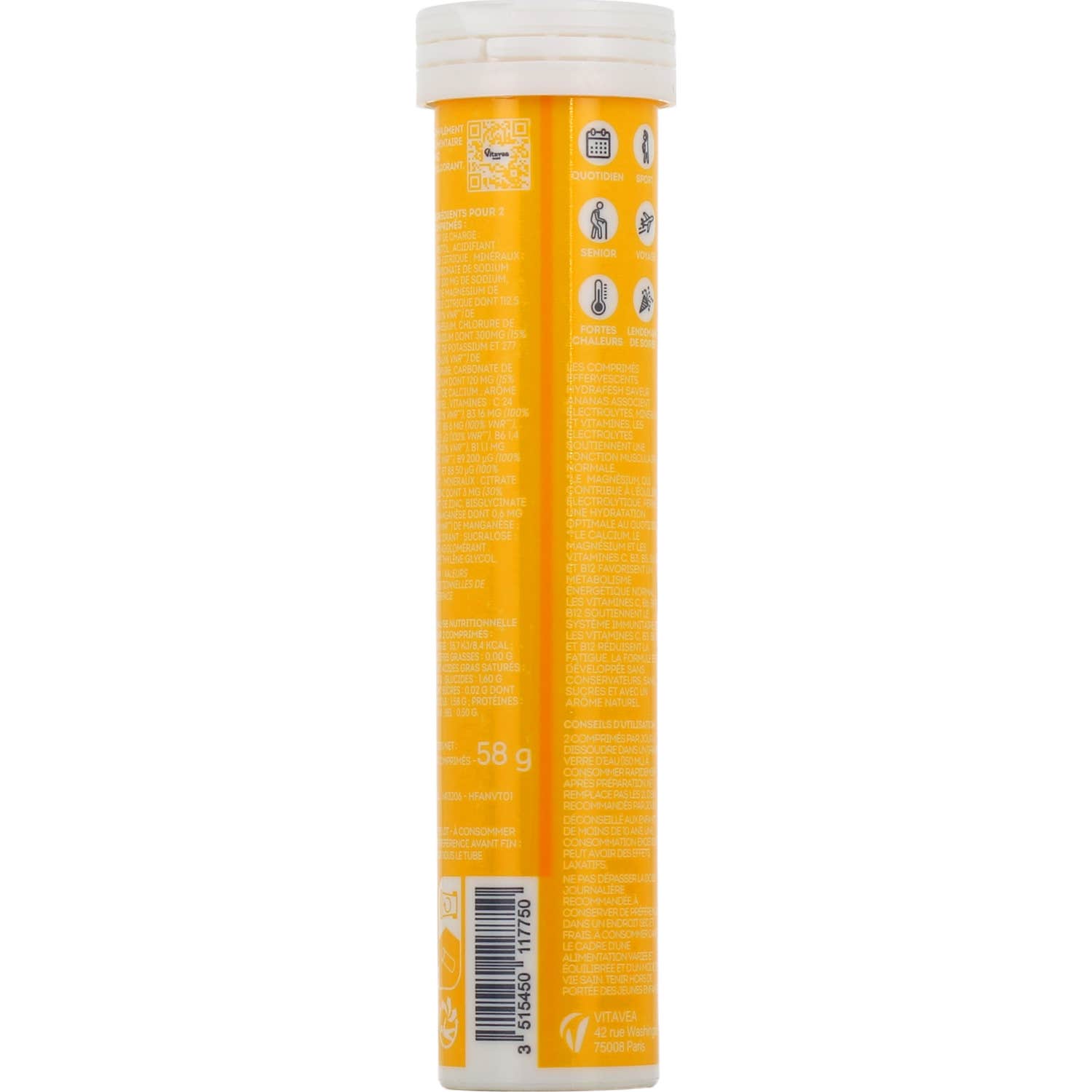 Les comprimés effervescents de Vitavea Hydrafresh contribuent à maintenir une hydratation adéquate à tout moment. La formule est conçue pour :