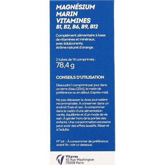Vitavea Magnésium & Vitamines B1 B2 B6 B9 B12 est un complément qui combine magnésium marin avec un ensemble de vitamines du groupe B. Il est conçu pour contribuer à :