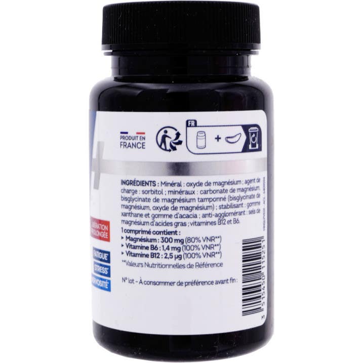Les différentes formes de magnésium, qui incluent magnésium marin, bisglycinate et carbonate, agissent de manière synergique pour augmenter leur efficacité, tandis que les vitamines B6 et B12 renforcent les actions du produit.