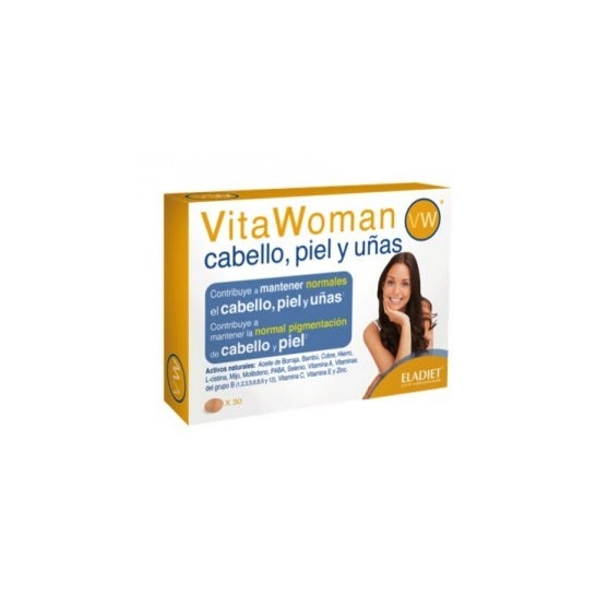 Vitawoman est un complément alimentaire qui aide à garder la peau, les ongles et les cheveux en bon état. Alors que le zinc et la vitamine B8 permettent une bonne pigmentation des cheveux, les vitamines A, B2 et B3 aident à maintenir une peau normale. De plus, sa composition fournit également des ongles sains et forts grâce au sélénium et au zinc ;