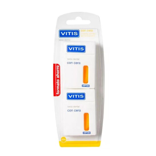 Vitis Dental Floss with Wax 2x50m est un fil dentaire composé de cire qui réduit efficacement la plaque bactérienne dans les espaces interdentaires et sous la ligne gingivale, prévenant ainsi les caries, la gingivite et les maladies parodontales.