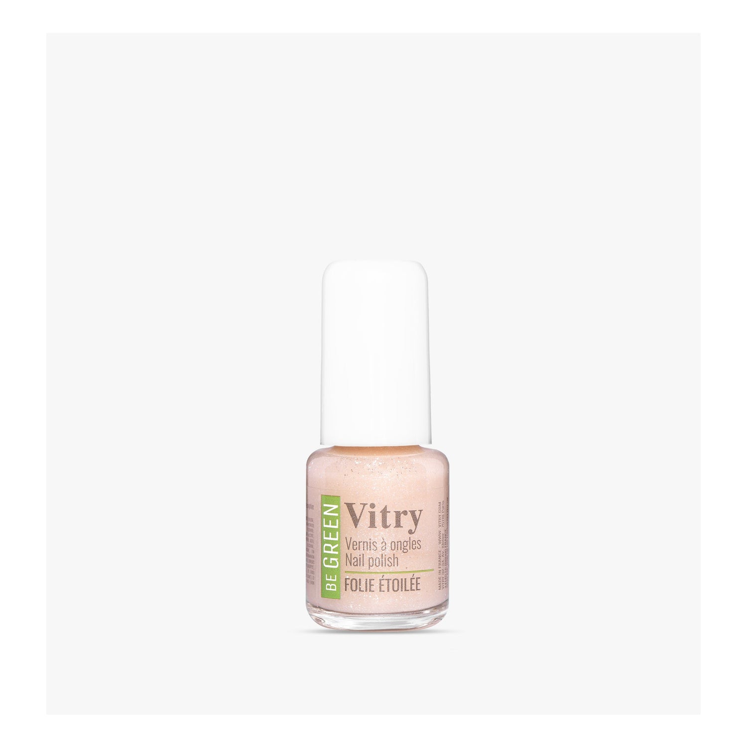 Vitry Vernis Be Green 132 Folie Etoilée 6 ml est un vernis à ongles végan de couleur rose brillant avec un effet étoilé. Sa formule écologique contient jusqu'à 84% d'ingrédients d'origine naturelle et apporte de la brillance dès la première application.
