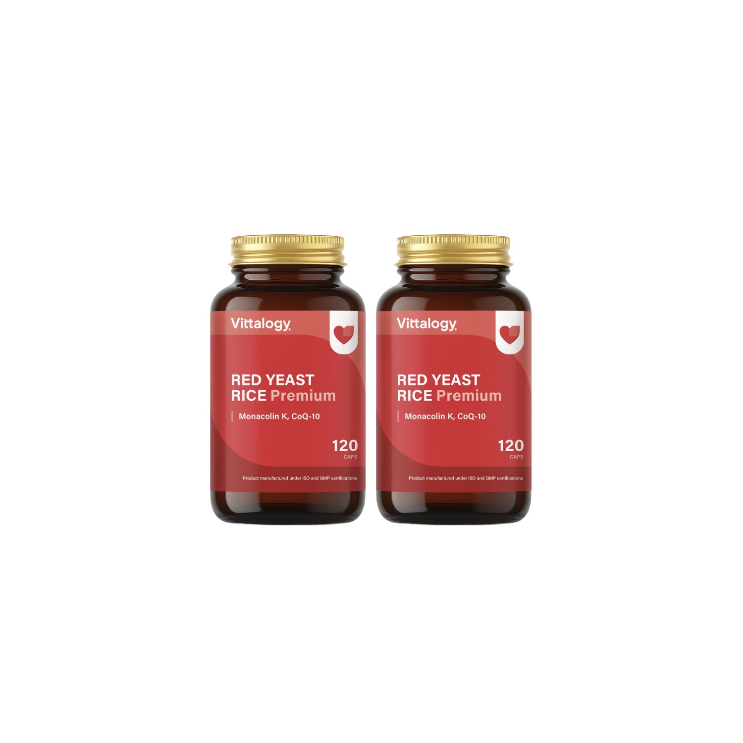Vittalogy Red Yeast Rice Premium 2x120caps Complément Alimentaire de Riz Rouge avec Coenzyme Q10 pour Réduire le Cholestérol.