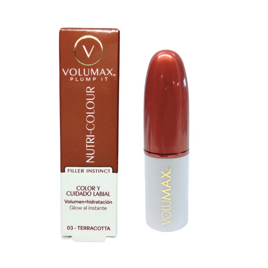 Volumax Plump It Nutri Color 03 Terracota est un produit conçu pour rehausser la beauté de tes lèvres, offrant volume et définition. Sa formule innovante contient Tripéptido-1 Biomimétique, qui stimule la production de collagène et de glycosaminoglycanes, contribuant à augmenter la fermeté et la densité de tes lèvres. Cet effet se traduit par des lèvres plus redensifiées et avec un aspect juvénile à long terme, offrant des résultats visibles de manière instantanée.