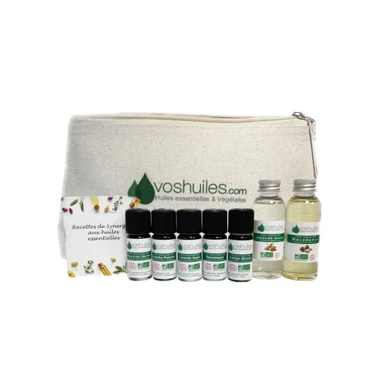 Voshuiles Kit Les 7 Huiles Essentielles Indispensables Bio est un ensemble qui comprend cinq huiles essentielles biologiques et deux huiles végétales biologiques, toutes certifiées par Ecocert selon la norme FR BIO-01. Ce kit est idéal pour ceux qui souhaitent s'initier au monde de l'aromathérapie.