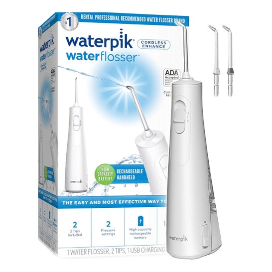 Waterpik WF21 Cordless Enhanced 1 ud irrigateur buccal est un irrigateur sans fil, rechargeable et portable conçu pour renforcer l'hygiène buccale. Il aide à éliminer la plaque bactérienne dans les zones difficiles d'accès et à améliorer la santé des gencives. Son design résistant à l'eau permet de l'utiliser même sous la douche, et il est pratique pour la routine quotidienne, les voyages ou les petites salles de bains.