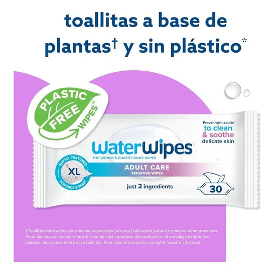 WaterWipes Lingettes Délicates Soin de l'Adulte 3x30uds sont des lingettes humides conçues pour une hygiène rapide n'importe où.