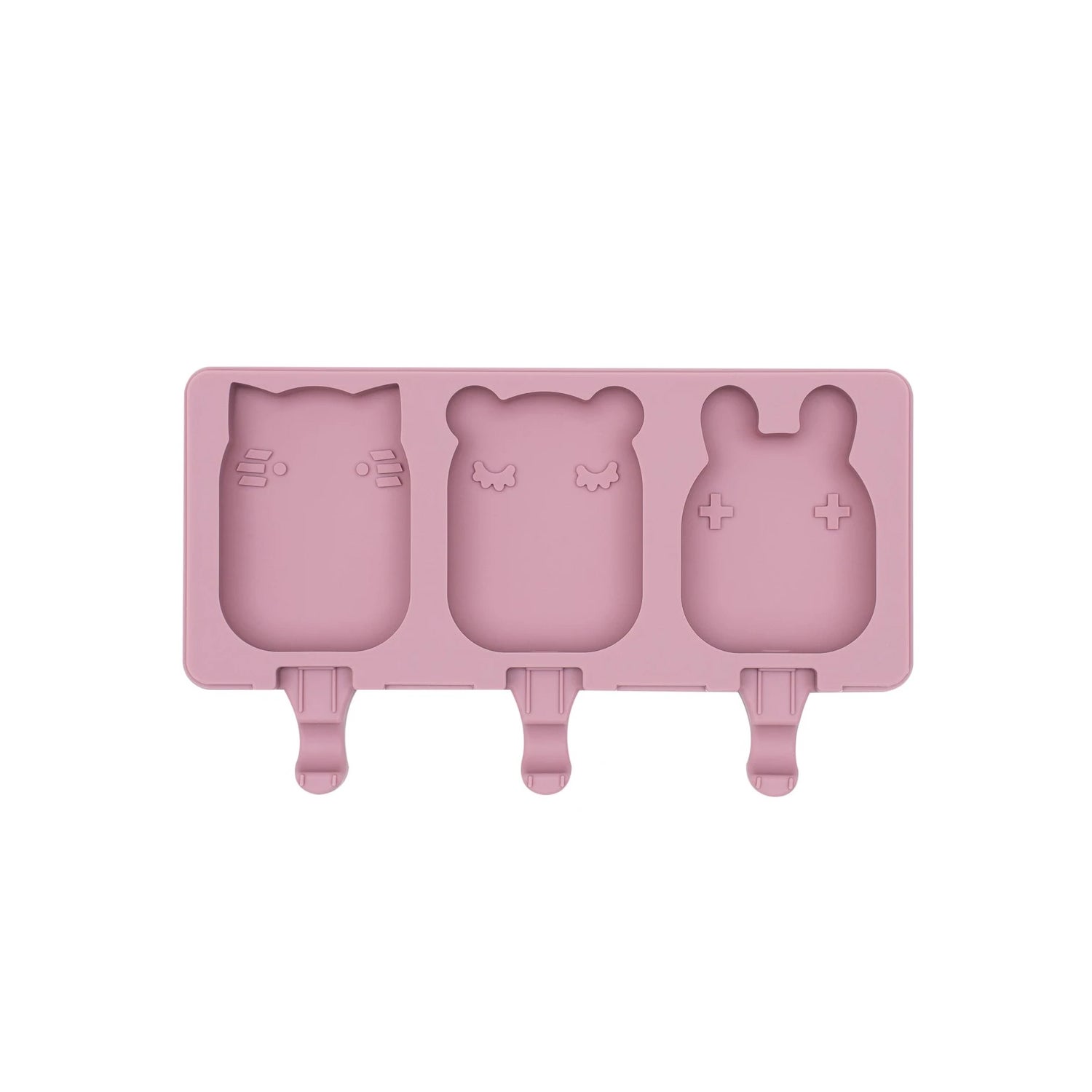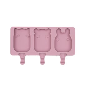Le moule à glace en silicone We Might Be Tiny Powder Pink 1pc est un moule qui permet de faire facilement des glaces maison. Il a trois trous avec des formes d'animaux amusantes pour créer des crèmes glacées amusantes.