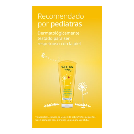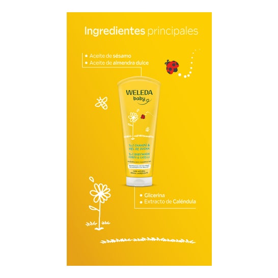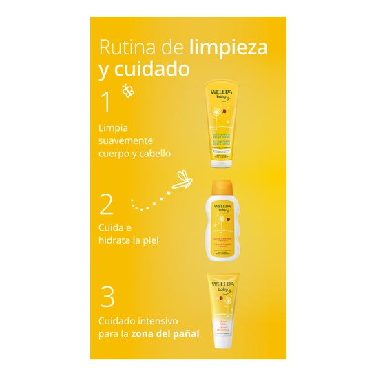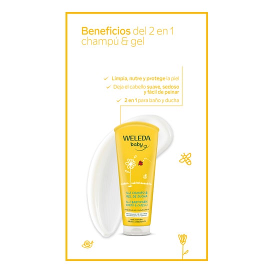 Weleda Baby 2 en 1 Shampoing et Gel Douche Calendula 200ml est un gel nettoyant 100 % d’origine naturelle, formulé pour nettoyer la peau de bébé en douceur.