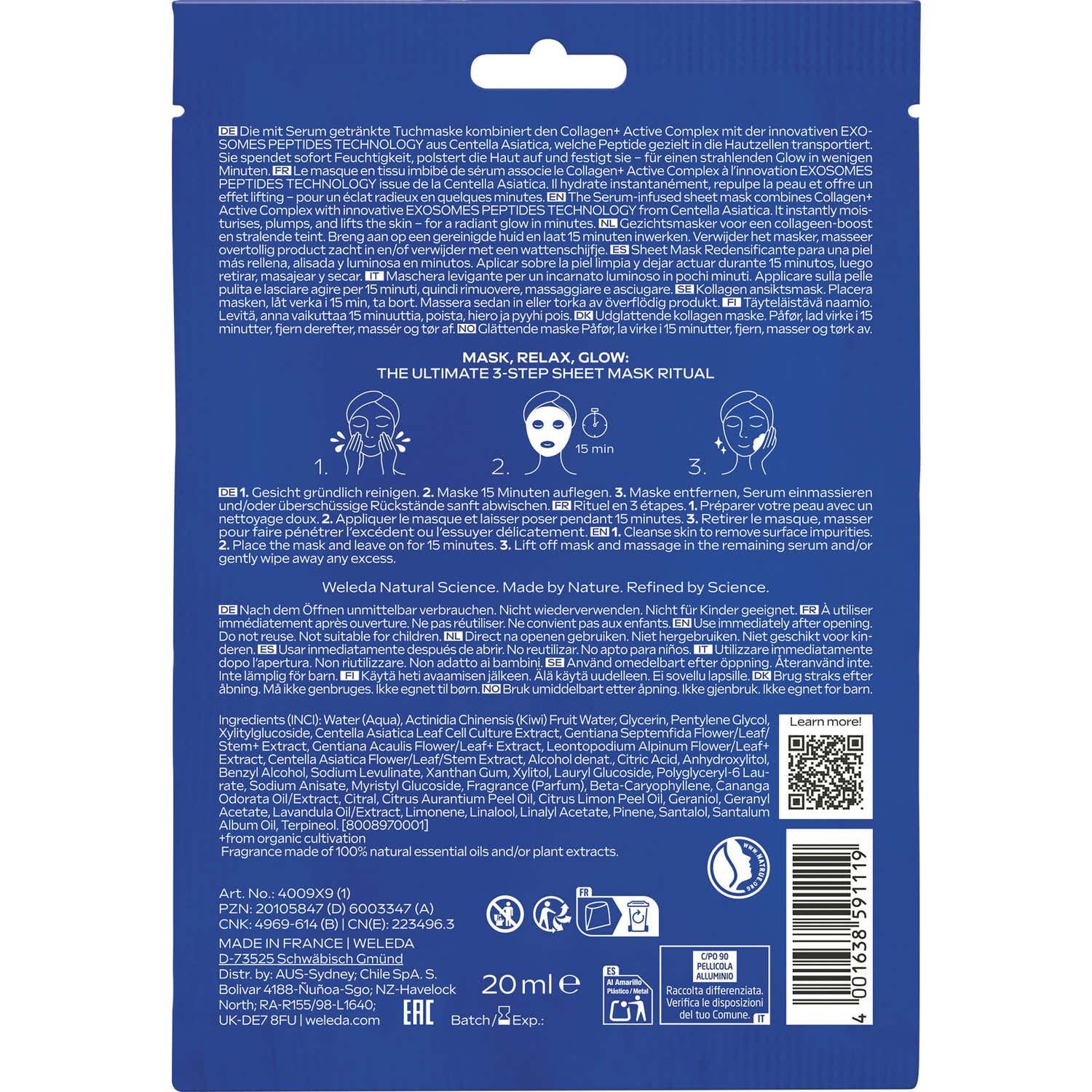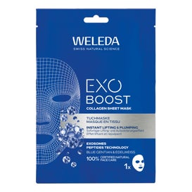 Weleda Exo Boost Collagen Sheet Mask 20 ml est un masque en tissu pour soin intensif anti-âge. Il offre un traitement express qui :