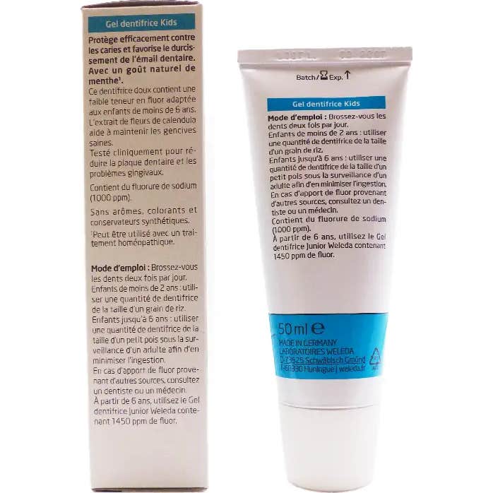 Il est recommandé d'utiliser le gel dentifrice deux fois par jour. Pour les enfants de moins de 2 ans, il est conseillé d'appliquer une quantité ne dépassant pas la taille d'un grain de riz. Pour ceux âgés de 2 à 6 ans, la quantité recommandée est équivalente à un petit pois. À partir de 6 ans, il est conseillé de passer au Weleda Gel Dentifrice Junior, qui contient une concentration de fluor de 1450 ppm.