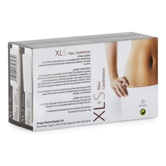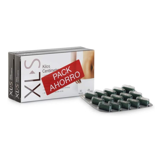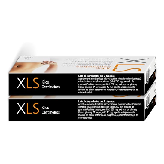 XLSKilos Centímetros 2x30comp est un complément alimentaire destiné à renforcer l'action réductrice des régimes de suivi et de contrôle du poids. XL-S contient deux plaquettes de 30 comprimés chacune, qui contribuent à réduire l'accumulation de lipides et de liquides dans des zones du corps telles que le ventre, les jambes et les chevilles.